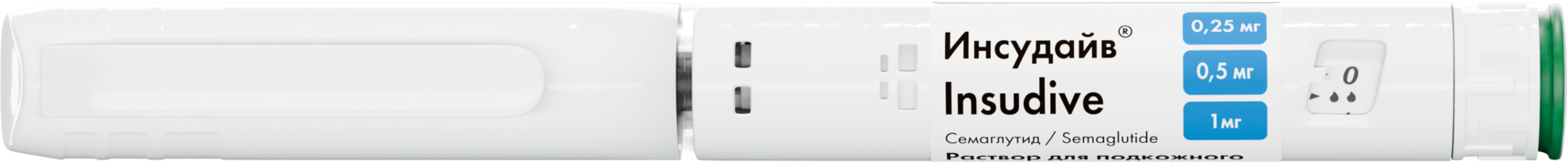 Инсудайв® — это препарат для снижения и поддержания веса, а также применяется для снижения глюкозы, содержащий активное вещество семаглутид. Семаглутид относится к средствам для лечения сахарного диабета; гипогликемическим средствам, кроме инсулинов; аналоги глюкагоноподобного пептида-1 (ГПП-1). Он похож на естественный гормон — ГПП-1, который выделяется в кишечнике после приёма пищи. Он действует на рецепторы в головном мозге, которые контролируют аппетит, заставляя вас чувствовать себя более сытым и менее голодным, и испытывать меньшую тягу к еде. Это поможет вам съесть меньше пищи и снизить массу тела. Также семаглутид помогает Вашему организму снизить уровень сахара в крови при его повышенных концентрациях и может способствовать предотвращению сердечных заболеваний.
